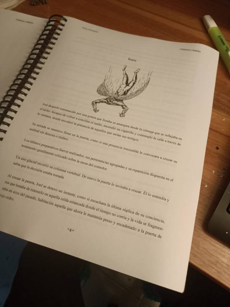 Finalmente, después de arduo trabajo, he terminado el primer manuscrito de «Crímenes y Delirios», una obra que explora a través de diversas historias y poemas, la desesperanza, la locura, la resignación y el mal como medio de trascendencia a la condición humana del sufrimiento.