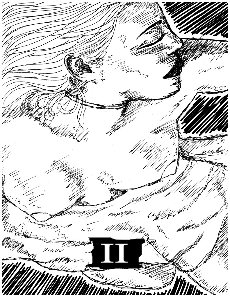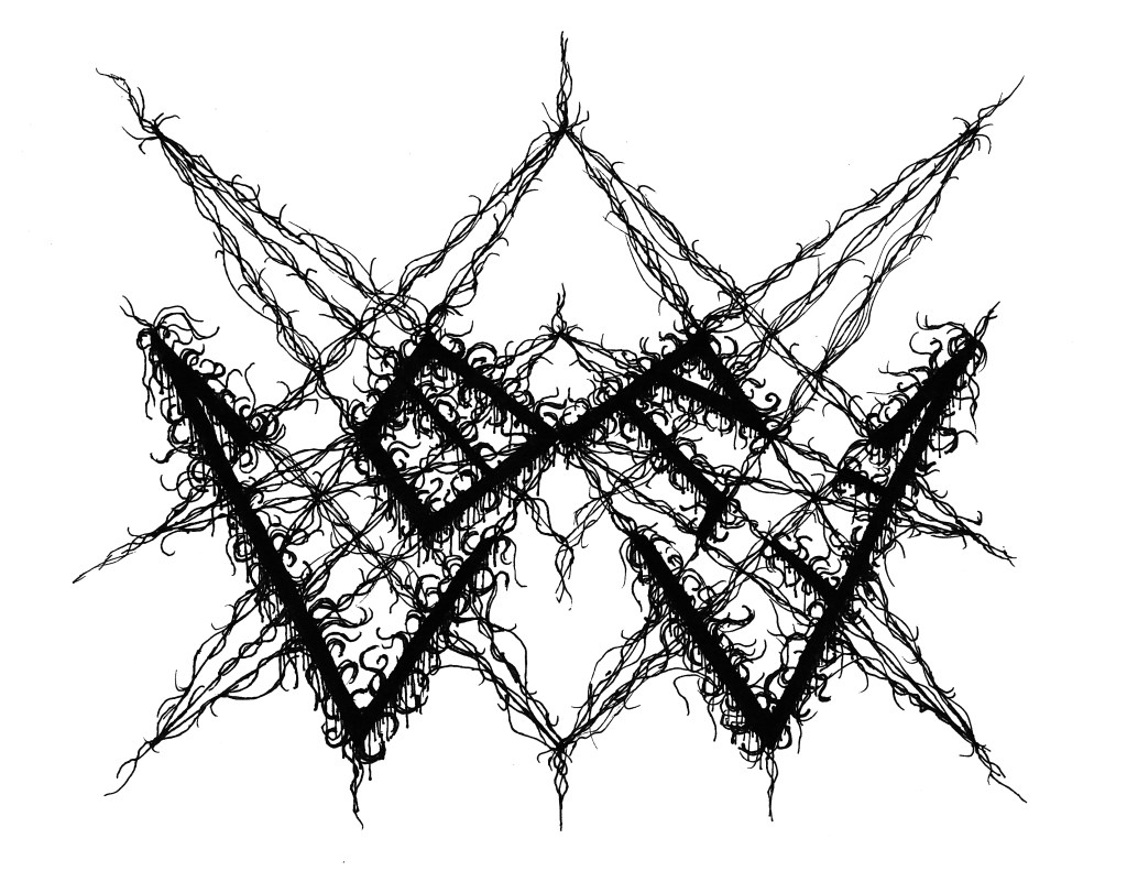 Each stroke is an invocation. Flesh tears along the inklines and dissolves in symbol. The symbol itself dissolves into shadows.